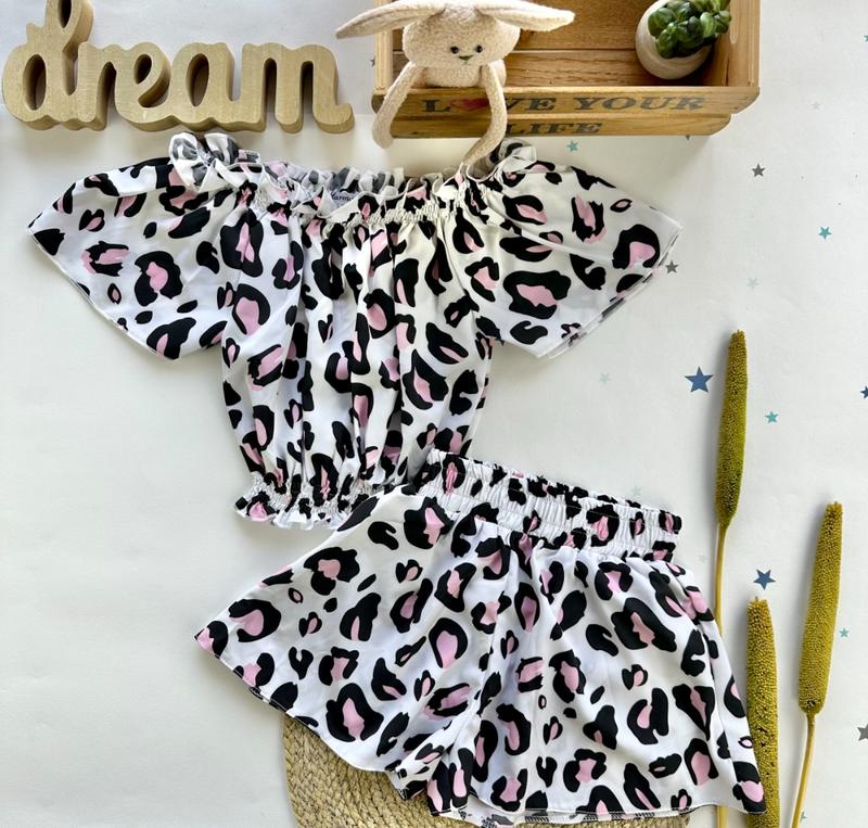 Літній костюм із софту із модним принтом- лео. Топ та шорти. Шорти з кишенями. Розміри: 128 – довжина топу 29, довжина шорт 30 134 – 31/ 32 140 – 32/ 33 146 – 34/ 34 152 – 36/ 34 Ціна: 550 грн КрохпельКа