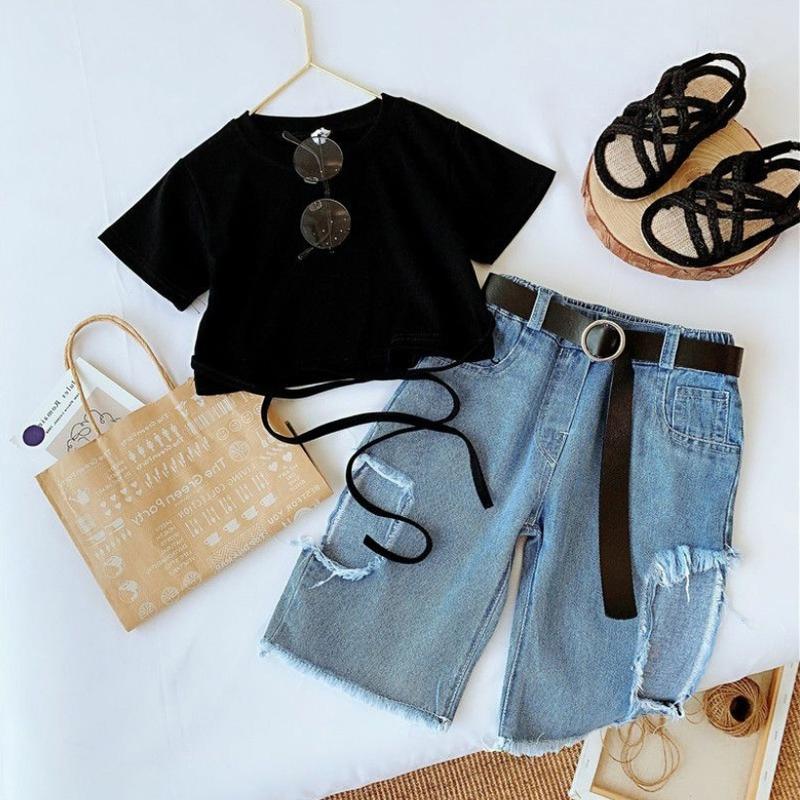 🌿 Для найстильніших дівчаток ми підготували новинку весняно-літного сезону 🌿 Таке вдале поєднання топу з зав’язками та трендовий джинсових шортів в стилі бермуди 💦топ - бавовна, шорти - джинс 💦 Ремінь не входить до комплекту ! ✅РОЗМІРИ В НАЯВНОСТІ: 💢 110р - 1шт 💢 120р - 3шт ✅ЗАМІРИ: 💎110р: футболка - довжина 35см, ширина 33см; шорти - довжина 35см, талія 17см; 💎120р: футболка - довжина 38см, ширина 34см; шорти - довжина 37см, талія 18см;