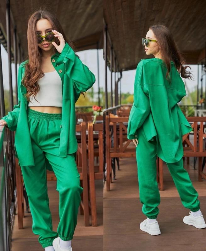 Арт 2593 Невероятно легкий костюм сборка из двух единиц джоггеры и рубашка Рубашка на пуговицах Есть карманы в штанах и рубашке рекомендую Тканина-льон ПОЛНОМЕРНЫЕ рост/длин.рубашки по переду/пог/рукав от горловины/длин.штанов/крок/пот/поб похибка+-2см 140-146/62/55/61/82/61/26/45-1шт Тан