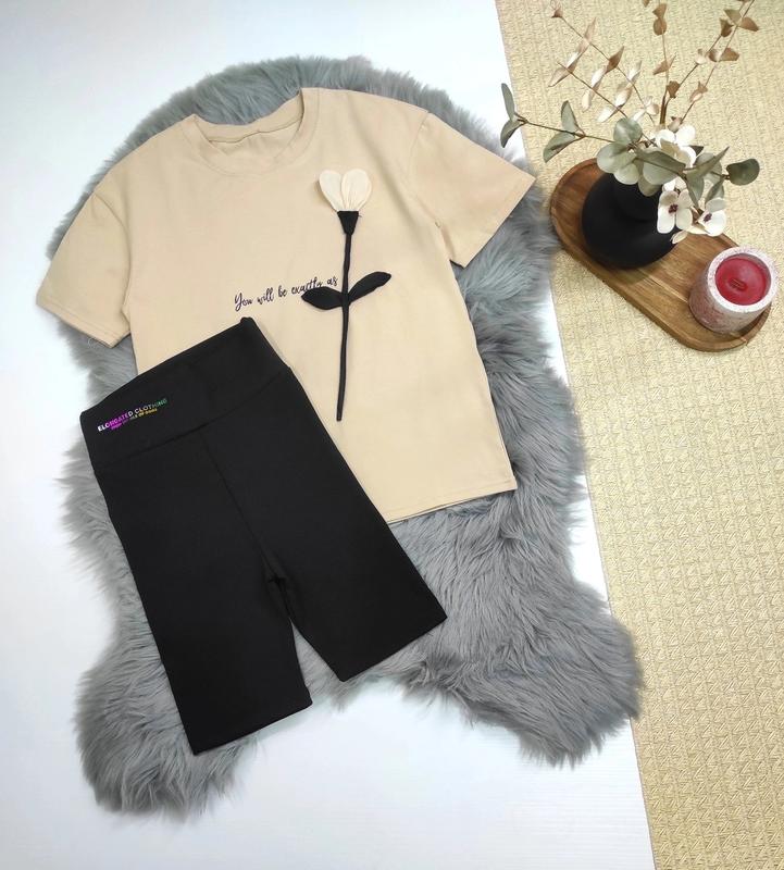 💝Крутой летний костюмчик для модницы 🏷Размеры: 134-164 🪡Футболка ткань турецкий стрейч кулир, красиво тянется. Велосипедки ткань рубчик отличного качества, высокая посадка 📐Замеры: длина футболки/пог/велосипедки длина/пояс 134-140-52/40/41/24 140-146-54/42/43/26 146-152-57/44/46/27 152-158-59/45/48/29 158-164-61/46/50/31 +-1см