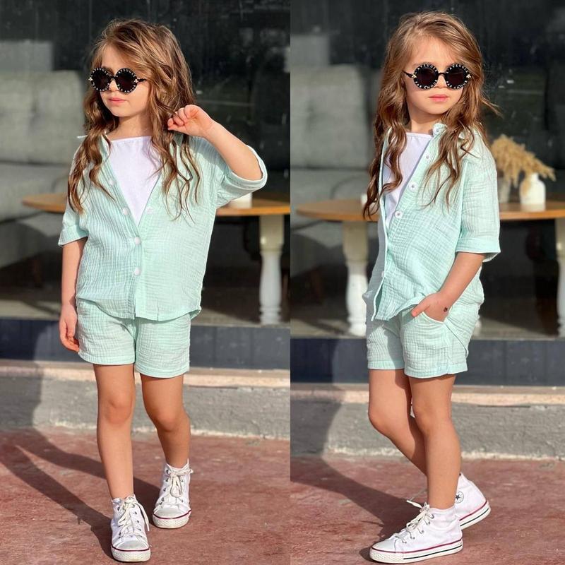 Новинка для дівчат 💥 Костюм 2-ка Тканина муслін гарноі якості Розміри : 92/100 см , 104/110 см 110/116 см , 116/122 см 122/128 см , 128/134 см ✅ціна 395 грн