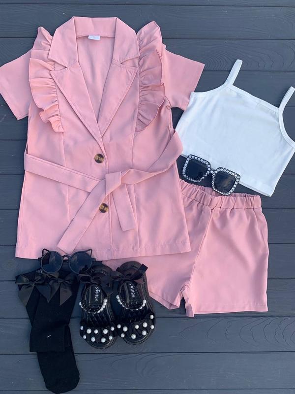 У наявності😍 Отримали дуже стильний комплект трійку для ваших дівчаток. 💖💖💖 Легенька тканина, дуже приємна до тіла, діткам буде зручно👍 В комплекті : жакет з поясом + топ ( стрейч трикотаж ) + шорти. Рекомендую. Розміри в наявності: Р4(110см)-довжина жакет 47см, ширина 33см. Довжина топ 24см, ширина 28см. Довжина шортів 27см, пояс 19см Р5(120см)-довжина жакет 53см, ширина 34см. Довжина топ 26см, ширина 28см. Довжина шортів 28см, пояс 21см Р6(130см)-довжина жакет 58см, ширина 36см. Довжина топ 29см, ширина 29см. Довжина шортів 29см, пояс 23см Р7(140см)-довжина жакет 60см, ширина 36см. Довжина топ 32см, ширина 30см. Довжина шортів 30см, пояс 23см арт62