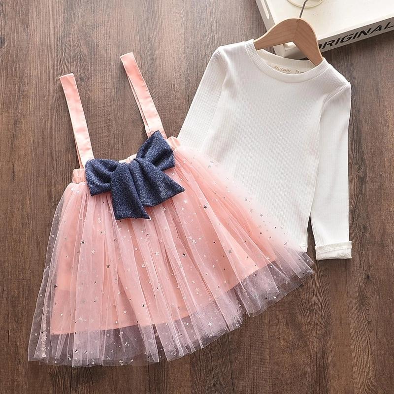 Стильные комплекты для модниц! Белая кофточка в рубчик - 95% коттон, 5% полиэстер!! Сарафан - пояс - резинка, хлопковая подкладка, двухслойный фатин, верхний слой украшен нежными звездами и шикарным люрексовым бантом! 💫Размеры 100 – 1 шт 💫Замеры (кофта - длина/ширина/рукав, сарафан -длина к юбке/ширина/длина бретелей) 100 - кофта - 36/25/34, сарафан - 28/21/21,5