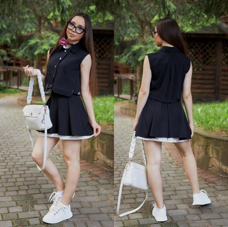 арт 5203 Невероятный костюм жилет на кнопках есть накладные карманы понизу утяжка и юбка-шорты верх юбочкой, подкладка шортиками застегивается на кнопку и молнию в поясе сзади под резинку ткань поли-лен СУПЕР КАЧЕСТВО! рост/длин.жилета/пог/длин.шорт/пот похибка+-2см 140-146/34/42/32/25-1шт 146-152/36/43/33/26-1шт 152-158/38/44/34/27-1шт 158-164/40/45/36/28-1шт 164-170/42/46/39/28-1шт Тан