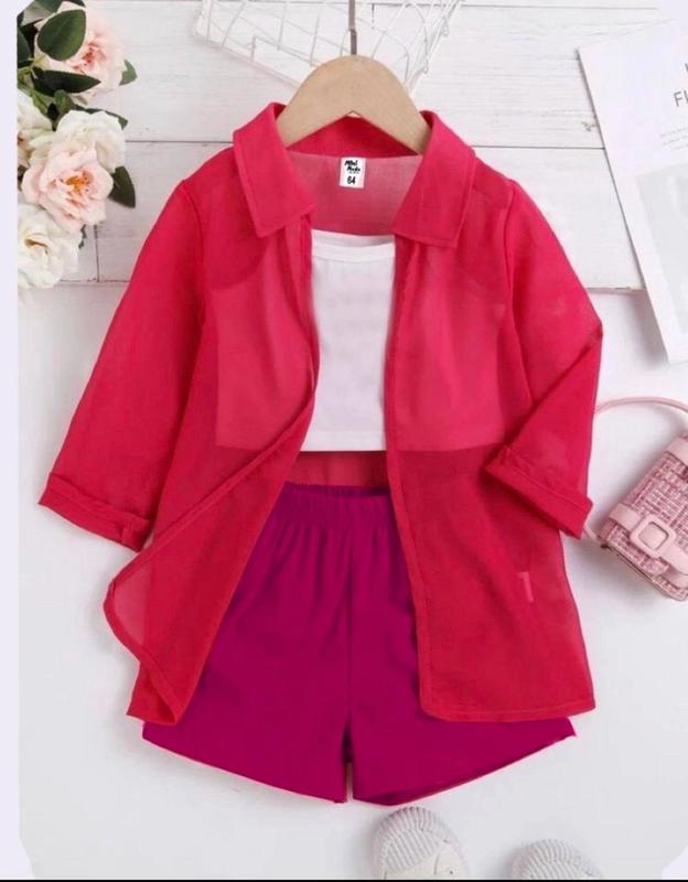 Летний костюм 3-х к 🍀Тканина Шифон рубашка,топ фулікра,шорти костюмка Выглядит непревзойденно 👌 Очень сладкая цена 💖 💰Цена 470 грн. ✅Размеры 134-140см 3шт