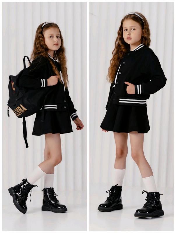 Комплект для девочек Бомбер+юбка шорты ткань замш диагональ Цвет черный Рекомендую Цена 950 грн рост/длин.бомбера/пог/рукав от горловины/длин.шорт/пот похибка+-2см 134/44/40/56/31/27-5шт 140/46/42/58/32/27-5шт 146/49/44/61/34/28-5шт 152/50/45/63/36/28-5шт 158/52/46/65/39/29-5шт