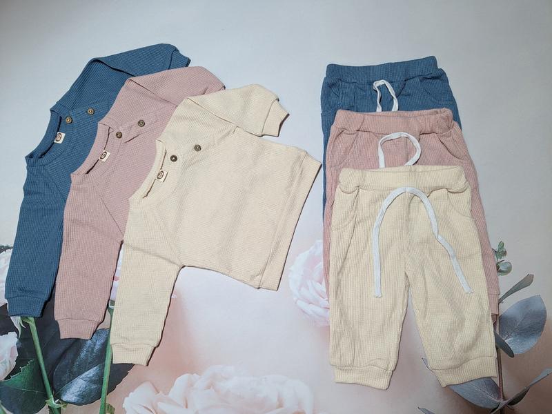 Стильный, качественный костюм 🎀Тканина - вафелька 🎀Размеры пишу по бирке Ориентируйтесь на измерения Допустима похибка +- 1-2 см 📦Товар проверяем на поште 🚗Отправка 1-2 дня Замерялась 1 ростовка 🍀Размеры: 🦋80р - Кофтинка: дов. 28 см шир. 27 см рукав (от шеи) 27 см Штани: дов. 36 см крок 19 см 🦋90р - Кофтинка: дов. 30 см в ширину. 27,5 см рукав (от шеи) 30 см Штани: дов. 40 см крок 22 см 🦋100р - Кофтинка: дов. 32 см пар. 30 см рукав (от шеи) 31 см Штани: дов. 42 см крок 24 см 🦋110р - Кофтинка: дов. 34 см шир. 30 см рукав (от шеи) 33 см Штани: дов. 45 см крок 26 см