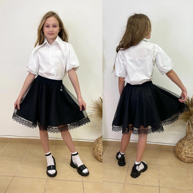 Таня арт 5263 Школьный комплект бавовняна блузка на пуговицах рукав фонариком и юбочка из костюмки и фатина украшена кружевом ГАРНАЯ КАЧЕСТВО! рост/длин.блузки/пог/рукав от горловины/длин.подножки/пот похибка+-2см 116/39/31/28/36/25-2шт 122/42/33/30/39/26-2шт 128/44/34/30/40/26-2шт 134/48/35/31/41/26-2шт 140/51/36/31/44/27-2шт