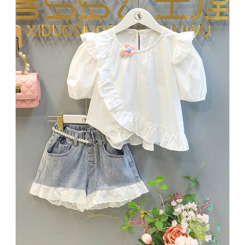 Костюм для девочки с джинсовыми шортами