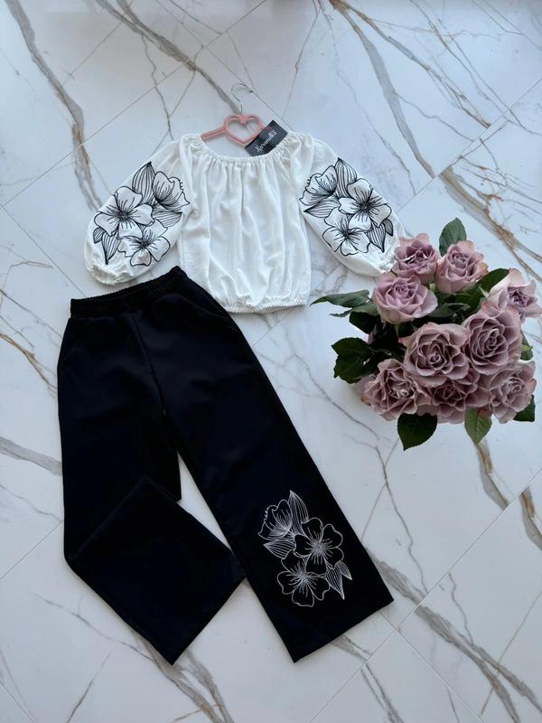 Отправка в средине Новинка Шикарный костюмчик Ткань блузка креп жатка с вышивкой Ткань штанишки костюмка с вышивкой,ие карманы,пояс на резинке рекомендую Цена 1050грн размеры полномерные 128 134 140 146 152
