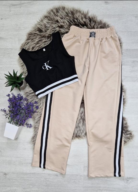 Стильный КОМПЛЕКТ топ и палка ткань турецкая двухнить пенье топ с накатом под резинку, в брюках есть карманы,резинка в поясе Рекомендуемый! возраст замеры: длина топа/пог/длина брюк/шаг/пояс 140-27/33/92/66/28