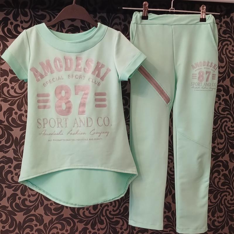 Современный костюм брюки и туника 128-134см девочка 7-9роков мята