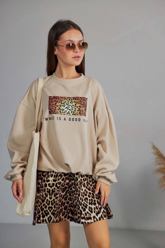 Костюм в хитовом леопардовом принте юбочка+велосипедки Кофтинка на затяжці Ткань-двухнитка с эластаном юбочка -джинс-коттон КАЧЕСТВО ЧУДОВА!! РЕКОМЕНДУЮ!!! Рост/длин.худи/пог/рукав от горловины/длин.спидн./ ПОТ похибка+-2см 140-146/45/53/60/33/27 146-152/49/55/62/34/27 152-158/52/58/65/35/28 158-164/55/60/69/38/29