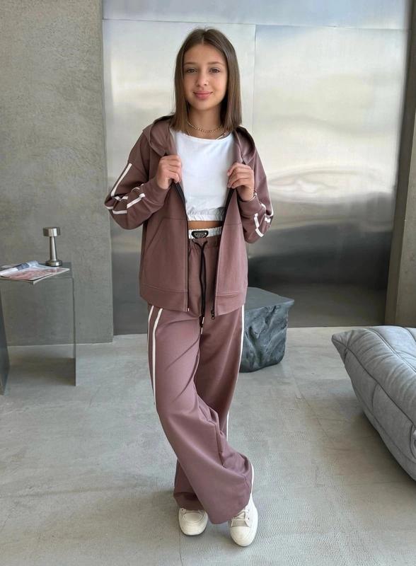 Стильный костюм тройка Худи на замочке + штаны палаццо+топ Тканина двухнитка пенье діагональ КАЧЕСТВО ЧУДОВА замеры:худи длин / пог / рукав от горловины / топ длин / пог / брюки длин / крок /пояс 128-134р-47/48/55/30/33/80/60/25