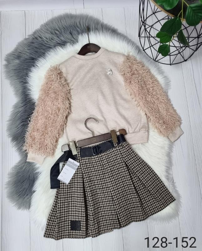 💞Крутий , стильний костюм спідничка-тканина плотний турецький трикотаж Поясок в комплекті В поясі широка резиночка кофтинка трикотаж рукавчик пишний з ефектом 3Д РЕКОМЕНДУЮ! 134(1 шт)-довжина кофти 45,рукав від плеча 47,пог 40,довжина спіднички 38,пояс 28 146(1 шт)-довжина кофти 46,рукав від плеча 52,пог 43,довжина спіднички 43,пояс 30