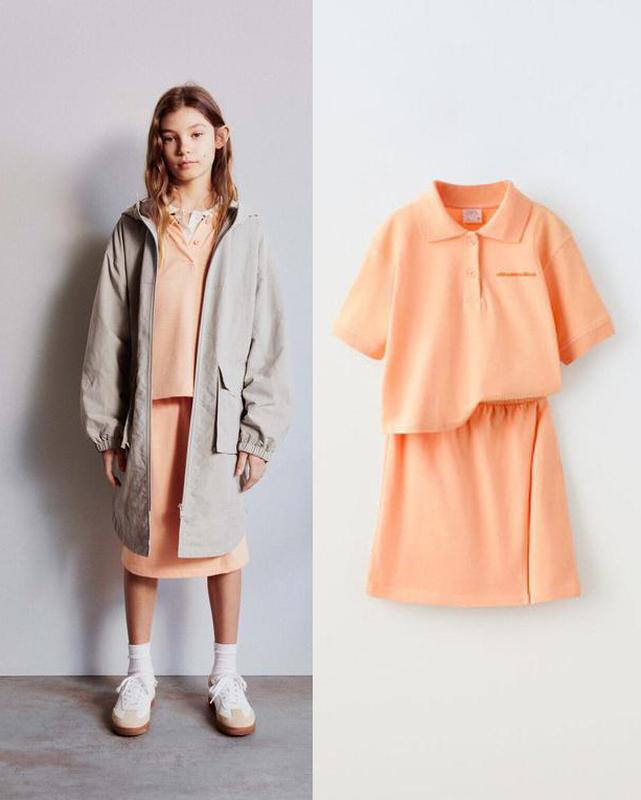 Костюм Zara из последней коллекции ! Комплект из двух предметов поло футболки и юбки . Поло с воротником и короткими рукавами. Застегивается на пуговицы. Рельефная надпись на груди. Юбка асимметричного кроя с эластичным поясом- резинкой. Размер по бирке 11-12 лет , но подойдет и на 10 лет Поло длина 50 см под руками 48 см рукав от воротника 37 см Юбка длина 53 см пот 30 поб около 45 см Цена всего 670 грн вместо 1500 грн Есть такой темно серый на размер больше . Трикотаж-100% хлопок. Подписывайтесь и смотрите, европейская мода для девочек👧 и для мальчиков👦 , новинки от любимых брендов по доступным приятным ценам . Оплата на карту Привата/Монобанка Новая почта Ежедневно! Укрпочтой по желанию ! Возврата и обмена нет! Резерв держу 1 сутки. Есть наложенный платеж новой почтой по предоплате!