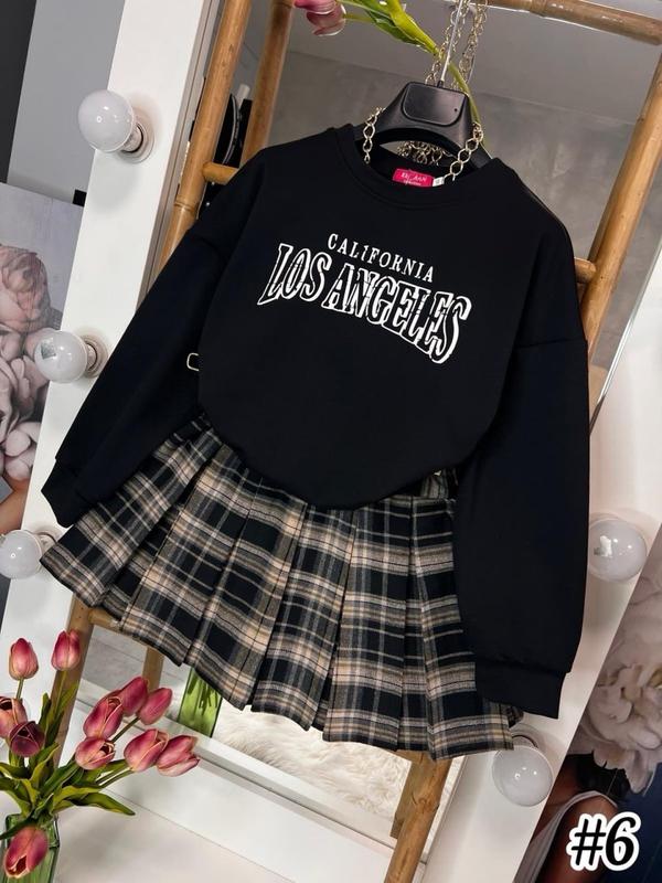 Крутезный костюмчик свитшот и юбочка в складку в талии под резинку свитшот с накатом рукав спущенный Ткань двунитка и полушерсть РЕКОМЕНДУЮ! цена 980 грн рост/длин.свитшота/пог/рукав от горловины/длинны/пот Похибка+-2см 140/50/50/59/35/27 146/51/51/61/36/27 152/52/52/63/37/28 158/53/53/65/38/29 164/55/55/68/40/30 арт77