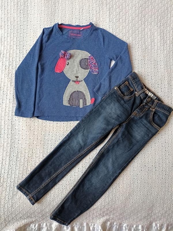 Набор брендовой одежды для девочки 4-5 лет в отличном состоянии. Демисезонные джинсы и реглан с собачкой. Темно-синие джинсы известного бренда TU. Ткань мягкая, приятная к телу, тянется. На поясе регулируются утяжкой. Качество отличное! Длина 67, шаговая 47, в поясе 26 см. Реглан известного бренда Bluezoo с симпатичной аппликацией собачки. Тоненький, мягкий, эластичный.. Длина спереди 39, сзади удлиненный 42, рукав от плеча 39, ширина под рукавами 31,5 см. Смотрите также другие Мои объявления, есть хорошие вещи для девочки