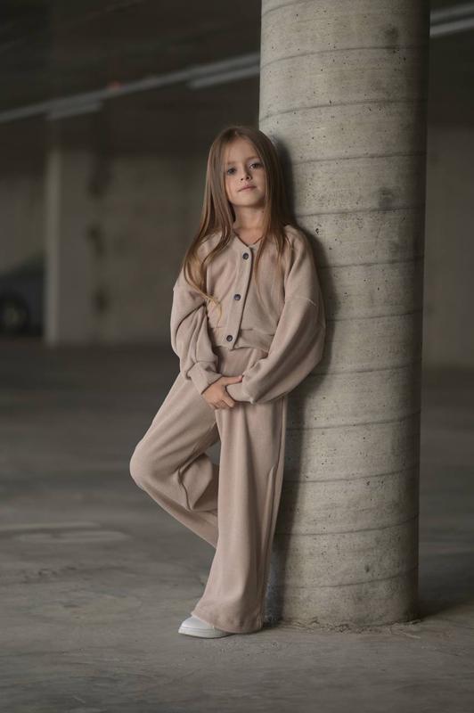 Стильний костюм з Ангори дитячий ‼️№2416‼️ ➡️Ціна -930 Тканина - турецька Ангора рубчик ( склад: 20% вовна,80 віскоза, 20% еластан) високої якості, внутрішня поверхня покрита м'яким ворсом, який зігріває. Стильні штани палаццо та бомбер. Розміри- 122-128, 128-134, 134-140, 140-146 Колір - бежевий, чорний.