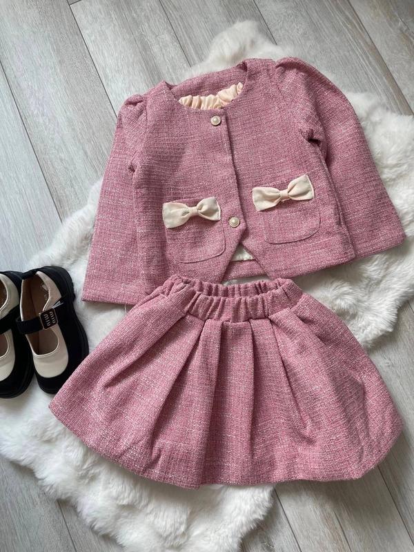 Пояс резинка-тягнеться. Підкладка нейлон Люкс якість Р.90-2 ШТ-піджак:рукав від плеча 34 см.,довж.35 см, ширина 32 см Спідниця пояс резинка 18 см-тягнеться, довж.26 см.- Р.100-3 ШТ-піджак:рукав від плеча 37 см.,довж.37 см, ширина 35 см Спідниця пояс резинка 19 см-тягнеться, довж.28 см.- Від 110 до 130 розміру ціна - 1240 грн!! Р.110-2шт-піджак:рукав від плеча 39 см.,довж.41 см, ширина 36 см Спідниця пояс резинка 19 см-тягнеться, довж.29 см. Р.120-3 ШТ-піджак:рукав від плеча 42 см.,довж.44 см, ширина 37 см Спідниця пояс резинка 21 см-тягнеться, довж.32 см.- Р.130-1ШТ-піджак:рукав від плеча 45 см.,довж.47 см, ширина 38 см Спідниця пояс резинка 21 см-тягнеться, довж.35 см.-
