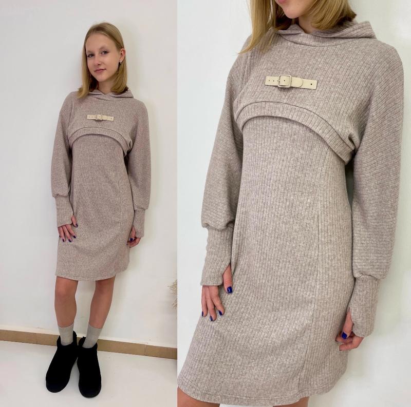 арт 5865 Изысканный костюм Кроп-худи и платье модний дизайн тканина утеплений трикотаж рубчик очень приятный к телу рост/длин.сукни/пог/дл.кофты по спинке/ширина по низу/рукав от горловины похибка+-2см 146/78/33/29/34/55-1шт Тан
