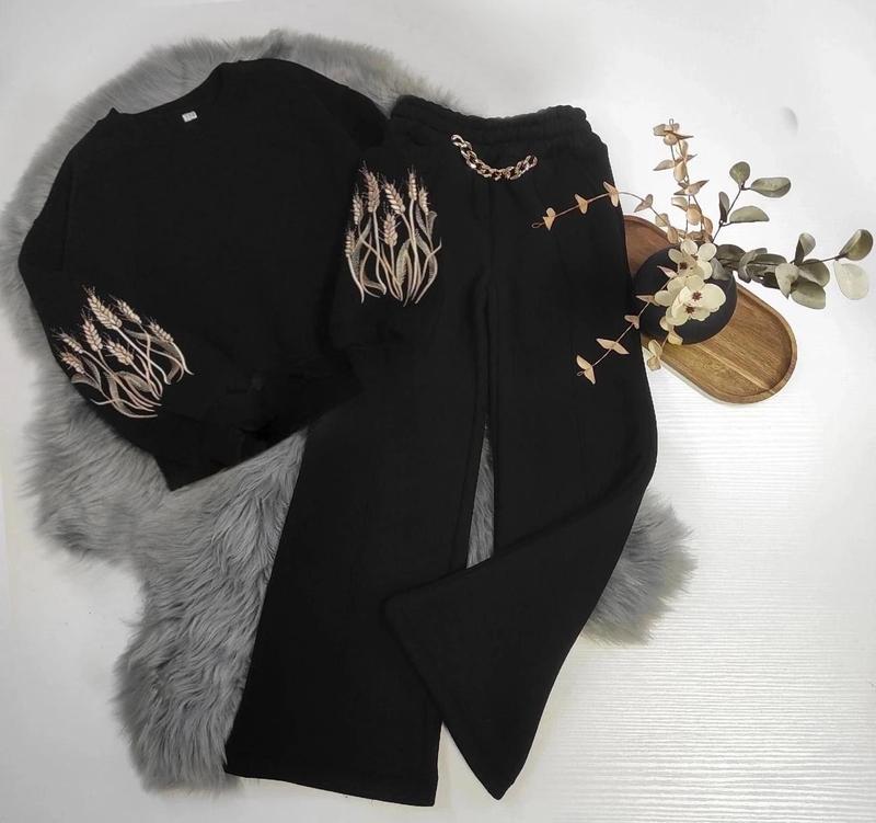 🧡 Стильный костюм свитшот коласки и палаццо ткань турецкая трехнить на флисе Свитшот с вышивкой костяшки - Не накат! НЕ КОШЛАТИТСЯ ! Цена 1210 грн замеры: длина палаццо/крок/пояс/длина худи/рукав/пог 134-81/61/25/45/57/45 140-85/64/26/47/61/47 146-89/67/27/50/63/48 152-93/71/28/52/66/50 158-98/76/30/54/67/51 164-102/81/31/56/70/52 -+2 см