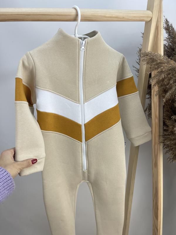 Теплий суцільний комбінезон на флісі стійкою під шию бежевий для дівчинки