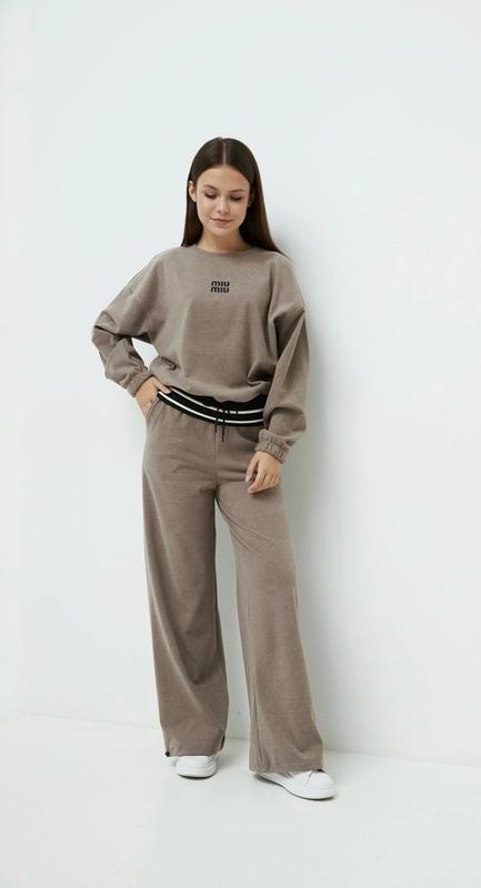 Стильный и теплый костюм свитшот с глиттерным накатом по низу резинка со шнурком-стяжкой штаны по низу стягиваются резинкой с фиксатором ткань флис-термо КАЧЕСТВО ЧУДОВА!! РЕКОМЕНДУЮ!!! 146 152 158 длина свитшота/пог/рукав от горловины/длина брюк/шак/пот/поб похибка+-2см 146-152/50/50/59/93/64/25/40 152-158/52/52/61/96/67/25/42 158-164/54/55/63/99/71/26/44