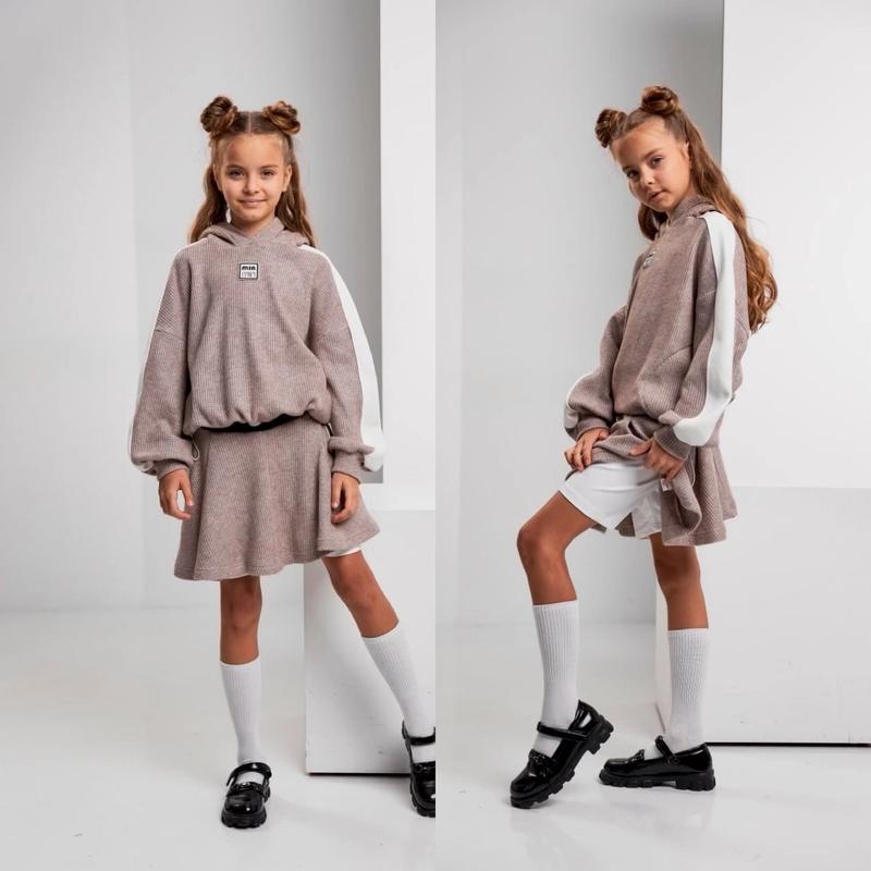 Мега крутой костюм Худи и юбка-шорты худи на стяжках и с капишоном, комбинировано со вставками. Юбочка в поясе под штроку резинку внутри шортики Ткань-антора вязка, более объемного плетения ГАРНАЯ КАЧЕСТВО! рост/длин.худи/пог/рукав от горловины/длинны/пот/ширина шорт похибка+-2см 140-146/46/56/62/37/29/38-1шт 146-152/49/57/64/38/30/39-1шт 152-158/52/58/67/40/33/41-1шт 158-164/55/59/71/42/34/42-1шт 164-170/58/62/75/44/35/43-1шт