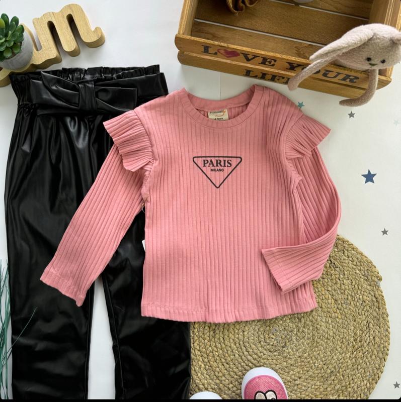 Стильный набор производства Турция. Реглан рубчик (мустанг, плотный и качественный) и брюки из экокожи. Брюки прямые, пояс в коплекте. Качество - отличное. Размеры: 3 года (98)- реглан рукав 30/ длина 32, брюки длина 52/ шаг 31 4 роки (104)- 31/ 34/ 56/ 33 5 лет (110)- 33/ 36/ 59/ 35 6 лет (116)- 34/ 37/ 62/ 37 7 років (122)- 36/ 40/ 65/ 40 Цена: 895 грн КрохпельКа