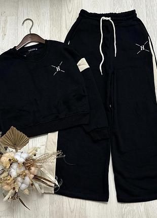 Стильний теплий костюм з брюками палаццо Виробництво Туреччина Тканина трьохнитка якості пенʼє на флісі Не кашлатиться 10-1шт 11-1шт 12-1шт 13-1шт 14-1шт кофта довжина/пог/рукав від горловини/ брюки довжина/пот/крок 10 років-45/46/60/89/27/60 11 років-46/48/62/92/28/67 12 років-47/50/65/96/30/64 13 років-48/51/68/97/31/65 14 років-49/53/68/101/31/67