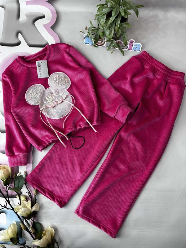 Поштучно 799д Костюмчик с нашивкой Теплый Вельвет на велюре 122-128см 1 128-134см2 134-140см3 140-146см 1