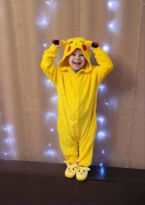 Детский костюм Пижама Кигуруми Покемон Пикачу для мальчиков и девочек - вельсофт - застегивается на пуговицы - задняя змейка для комфорта - рукава и низ на манжетах - теплая, удобная, мягкая - подходит как костюм в садик, на праздники, на фотосессии, вечеринки. - без тапочек - отличное качество 110 р-длина 87 см,рукав 41 см 130 р-длина 109 см,рукав 48 см 140 р-длина 115 см,рукав 52 см