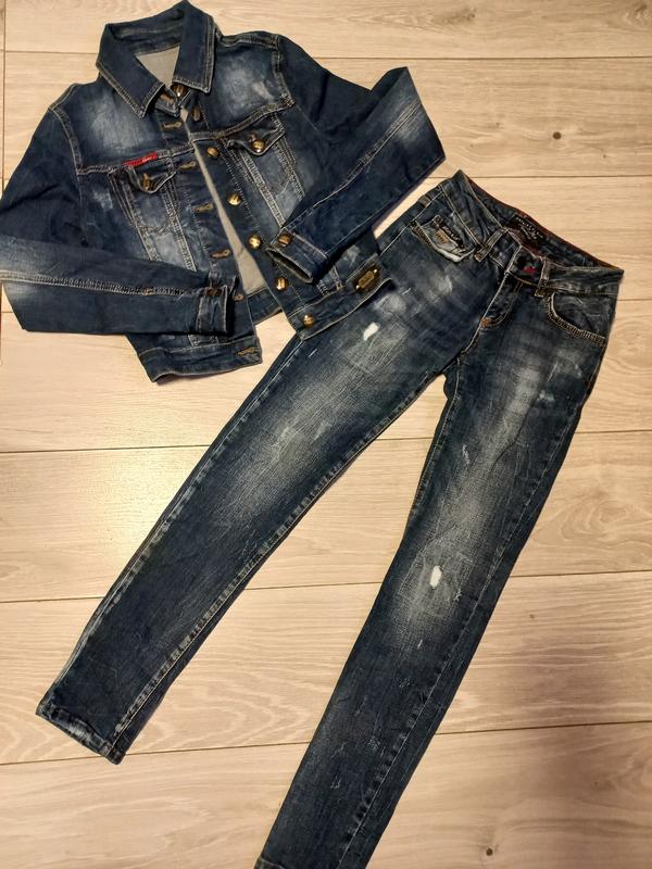 Брендовый джинсовый костюм philipp plein, на девочку 150-155 см