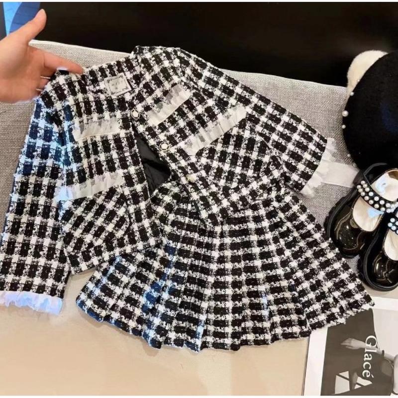 ===РОЗМІР 100=== ПІДЖАК довжина 31 см ширина 35 см плечі 26 см рукав від плеча 32 см СПІДНИЧКА довжина 28 см пояс 20 см Елегантний комплект для дівчинки – спідничка + піджак із твіду Ідеальний вибір для маленької леді! Матеріал: твід – стильний, щільний і приємний до тіла, підклад нейлон Дизайн: піджак на красивих декоративних гудзиках додає вишуканості. Комплектація: стильна спідничка та піджак – чудовий дует для свят, фотосесій чи урочистих подій. Комфорт і якість: тканина добре тримає форму, а фасон підкреслює витонченість образу