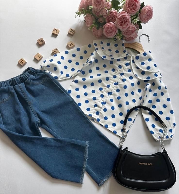 📝 Красивый комплект для девочек 🖤 Блуза - бавовна 🖤 Застегивается на пуговицы 🖤 Рукава на резиночке 🖤 Несколько слоев воротничка 🖤 Джинси 💯 клеш 🖤 Сзади есть два кармана кид Размер 100(3 шт) 110(3 шт) 120(2 шт) 130(1 шт) 140(2 шт) 140**(1 шт) Замеры 100-Длина кофты 37 см Рукав от горла 37 см ширина 29*2 см Длина брюк 58 см шаг 35 пояс 18*2 см 110-Длина кофты 40 см Рукав от горла 40 см ширина 31*2 см Длина брюк 64 см шаг 38 пояс 19*2 см 120-Длина кофты 42 см Рукав от горла 42 см ширина 33*2 см Длина брюк 66 см шаг 41 пояс 19*2 см 130-Длина кофты 44 см Рукав от горла 44 см ширина 34*2 см Длина брюк 68 см шаг 44 пояс 21*2 см 140-Длина кофты 48 см Рукав от горла 48 см ширина 35*2 см Длина брюк 75 см шаг 48 пояс 21*2 см 140**-Длина кофты 46 см Рукав от горла 48 см ширина 35*2 см Длина брюк 62 см шаг 38 пояс 19*2 см Замеры сделаны одной ростовки Допустима похибка +-1-2 см