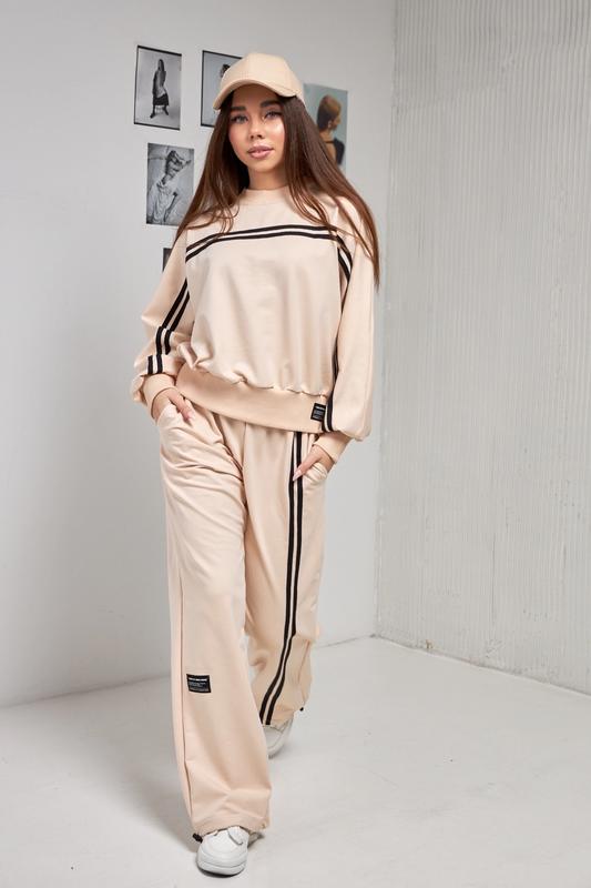 Таня арт 6026 Невероятно крутой костюм двойка с широким модным манжетом измельченная Широкие брюки с карманами По низу есть утяжка ткань Турецкая двунитка пенье не кашлатиться супер качество рост/длин.свитшота/ширина по низу/рукав от горловины/длин.штанов/крок/пот/пос похибка+-2см 140/46/36/59/90/63/27/48-1шт 146/48/37/62/93/66/28/50-1шт 152/51/38/65/97/69/29/52-1шт 158/53/39/68/101/71/30/53-1шт 164/56/40/71/105/74/31/54-1шт