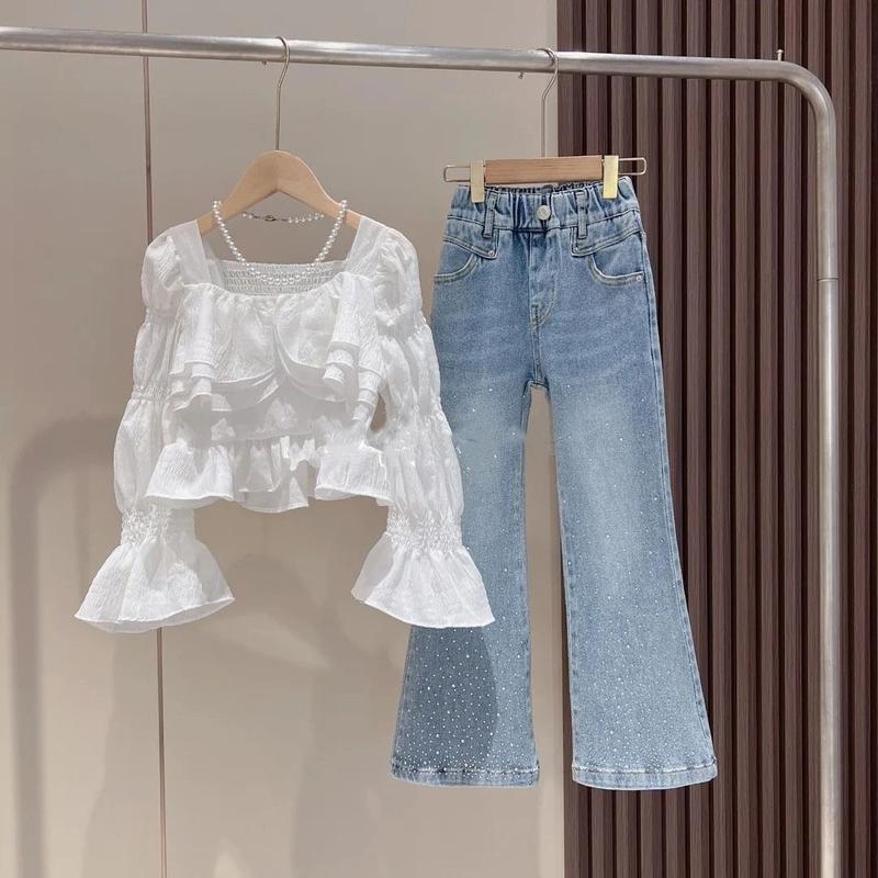 Костюм 💰 Цена 1345 грн \\\\\\\\\\\\\\\\\\\\\\\\\\\\\\\\\\\\\\\ 🦋Мега стильная блуза. 🧷 Жатый коттон. Подклад: нейлон. 🧷 На спинке корсет - резинка, хорошо тянется. 🧷 Подойдет для школы и на праздник. 🧷 Замер рукава от плеча 🧷 Супер качество. Рекомендую !🔥 Блуза 💰 Цена 560грн (растриб+100) : р.120см. - дов. 34см., шир. 30см. , рукав 42см. р.130см. - дов. 35см., шир. 32см. , рукав 48см. р.140см. - дов. 38см., шир. 35см. , рукав 51см. р.150см. - дов. 41см., шир. 39см. , рукав 58см. р.160см. - дов. 42см., шир. 39см. , рукав 62см. \\\\\\\\\\\\\\\\\\\\\\\\\\\\\\\\\\\\\\\ 🦋Мега стильные джинсы. 🧷 Стрейч + джинс, резинка в поясе хорошо тянется. 🧷 Супер качество. Рекомендую !🔥 Джинси 💰Цена 840грн р.120см. - дов. 72см., крок 49см. р.130см. - дов. 75см., крок 53см. р.140см. - дов. 80см., крок 55см. р.150см. - дов. 85см., крок 59см. р.160см. - дов. 89см., крок 63см., стегна 44см. ▪️N-25
