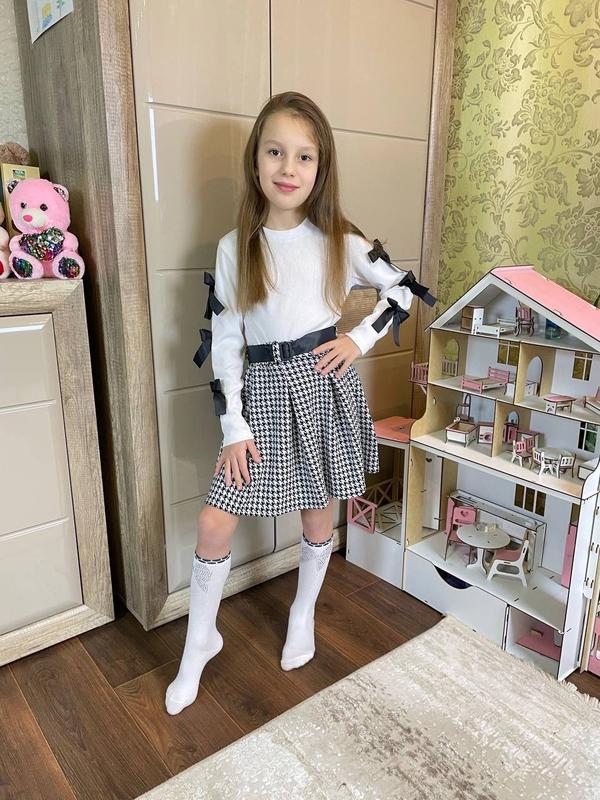Стильный костюм тройка для красавиц Жакет+гольф+юбка Ткань плотный турецкий трикотаж, гольф ткань рубчик Качество супер Жакет застегивается на пуговицы, имеет карман, юбка идет с поясом в комплекте Замеры:жакет дл/рукав/пог/топ дл./рукав/пог/дл.юбки/пояс 134-38/45/39/42/48/34/38/28 140-40/47/41/44/50/35/41/29 146-42/48/43/46/52/37/43/30 152-44/49/45/48/54/38/45/31 158-45/51/48/50/57/39/47/32 164-47/53/48/52/59/40/49/33