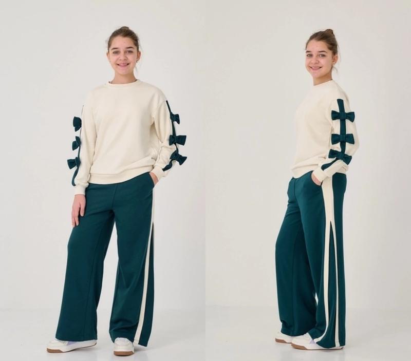 💝Весенний костюм двойка: свитшот + штаны 🏷Размеры: 140-152 (полномерные) 🪡Ткань: трикотаж Турция, петля качество пенье, манжеты меловая, брюки с карманами