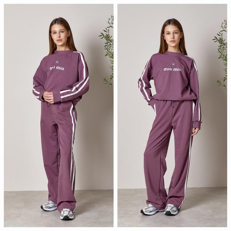 Шикарный костюм "Miu miu" Ткань турецкая двунитка Замеры-длина/пог/рукав от горловины\длина брюк\шаг\пояс 134-43\47\59\88\65\24 40-47\49\63\92\67\26 146-49\50\65\95\69\27 152-51\51\68\98\73\28 158-53\52\69\101\75\29 134-1шт 140-1шт 146-1шт 152-1шт 158-1шт