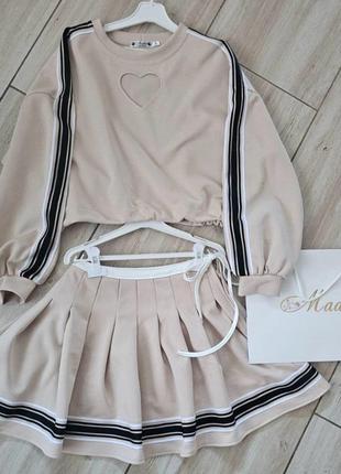 Непревзойденный костюм юбка и свитшот на стяжке, все декорировано трендовыми лентами в сочетании с сердечком,також юбочка регулируется стрейчовой,атласом шнуровкой. Тканина-трикотаж лакоста Супер качество Рост 140-146 146-152 152-158 158-164 164-170