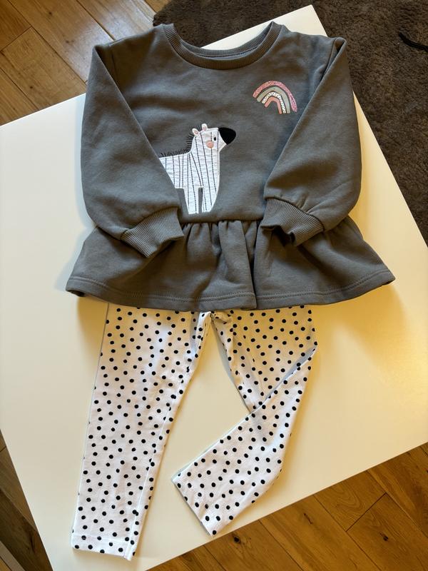 Очень классный костюмчик от британского бренда Кофта на флисе с баской и коттоновые леггинсы Качество на высоте Возраст -5 /6 лет (110 /116) Лучше подойдет на 110 см