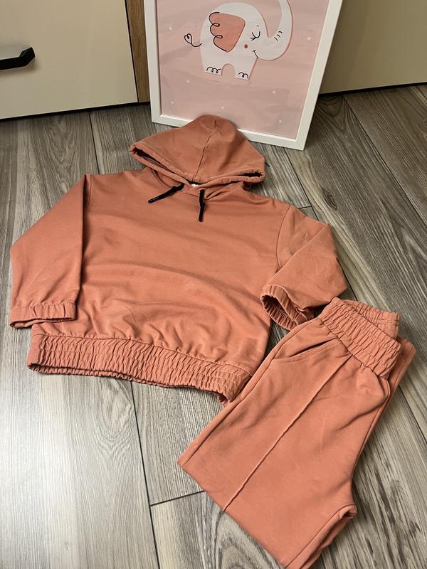 Практичный костюм для прогулок, производство Турция. Идеальное состояние. Свитшот и штаны на манжетах. Штани: Длина 71, пробковый 47, пояс 25 тянется, бежевое 34 Кофта: длина по спинке 45 см, рукав от плеча 44см, ширина 39 см