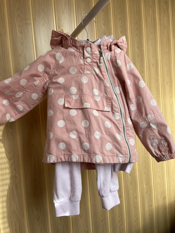 Костюм розовый, хорошего качества, не скатывается, будет на сезонов 3-4 Ветровка большемерит, если нужны замеры пишите) На жилетке есть несколько пятен, на фото показала