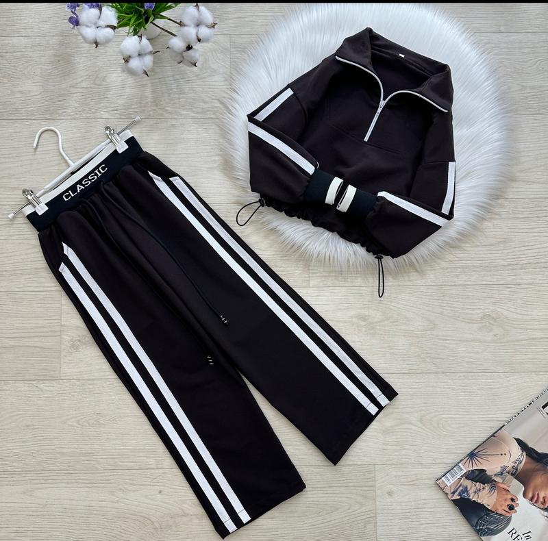 Стильный костюмчик с акцентными лампасами 🤩😍🤩 Свитшот с трендовым воротничком на молнии 🥰 В боках затяжки 👌🏻 Шнаны-палаццо на широкой резиночке🥰 Детки кулиски и кармашки ❤️ Цвет: шоколад Ткань: турецкая двунить 🔝 Производитель: Украина 🇺🇦 ЗАМІРИ ⤵ +/- 1-2см!!! ▪️р.122-СВЕТШОТ: длина от плеча 40см/ рукав от горловины 49см/ ПОГ 44см. Штанины: длина по боковому шву 71см/ шаг 51см/ ширина бедер 39см ▪️р.128-СВЕТШОТ: длина от плеча 42см/ рукав от горловины 50см/ ПОГ 45см. Штаны: длина по боковому шву 75см/ шаг 54см/ ширина бедер 41см ▪️р.134-СВЕТШОТ: длина от плеча 43см/ рукав от горловины 55см/ ПОГ 47см. Штаны: длина по боковому шву 82см/ шаг 59см/ ширина бедер 43см ▪️р.146-СВЕТШОТ: длина от плеча 49см/ рукав от горловины 60см/ ПОГ 49см. Штанины: длина по боковому шву 92см/ шаг 65см/ ширина бедер 46см