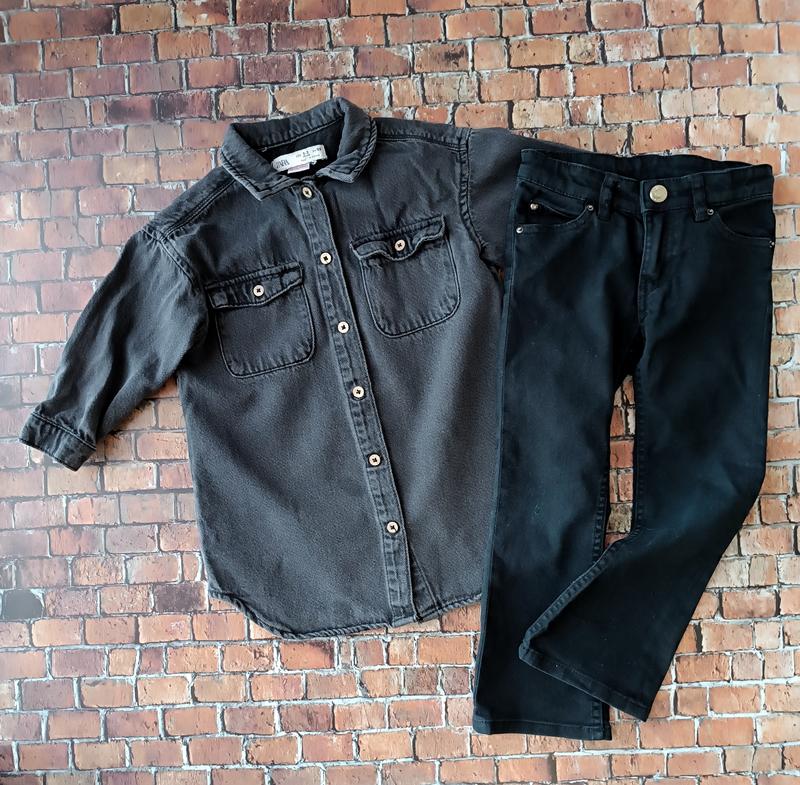 Красивый и стильный набор одежды на девочку Фирма: Zara i H&M Размер: на наборе 2-3, по факту 3-4роки Стан: Джинсовка имеет темно серый цвет и маленькие следы ношения на штанишках, на колене