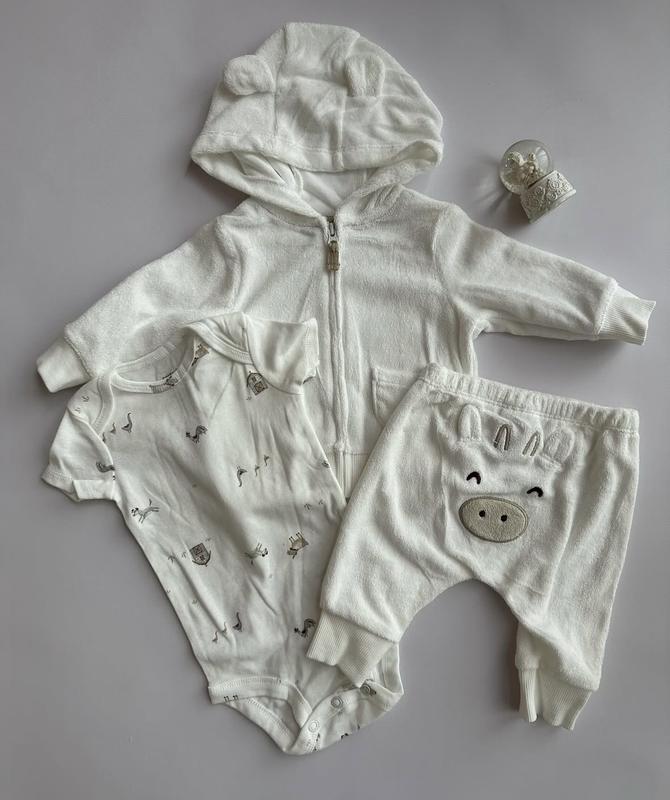 Костюм от Carters: штанишки, кофточка на молнии с капюшоном и бодик на 1 мес.(55-61 см).
