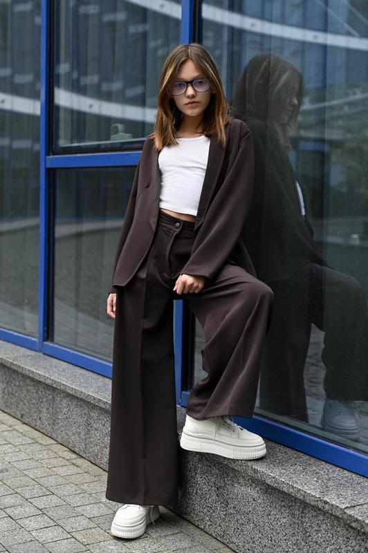 Костюмная ткань высокого качества турецкого производства. Материал долговечный и износостойкий, костюм из этой ткани служит долго, не протирается, не кашлатится и не образует характерный лискирующий блеск. Изделия отлично держат форму, не деформируются. Брюки с лямками под ремень и в поясе дополнительно резинка помогает корректировать объем талии. 💫На прочной подкладке. 💫 146-152, 152-158, 158-164, 164-170