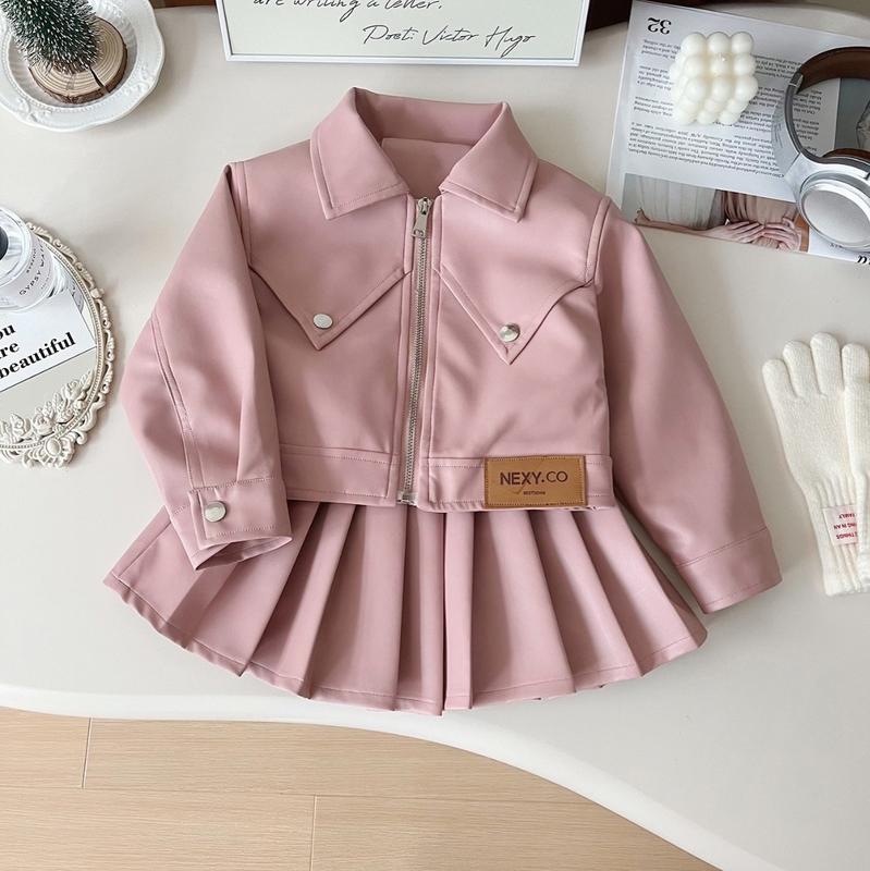 Неймовірно красивий та стильний костюмчик для дівчаток: спідничка та курточка з еко-шкіри